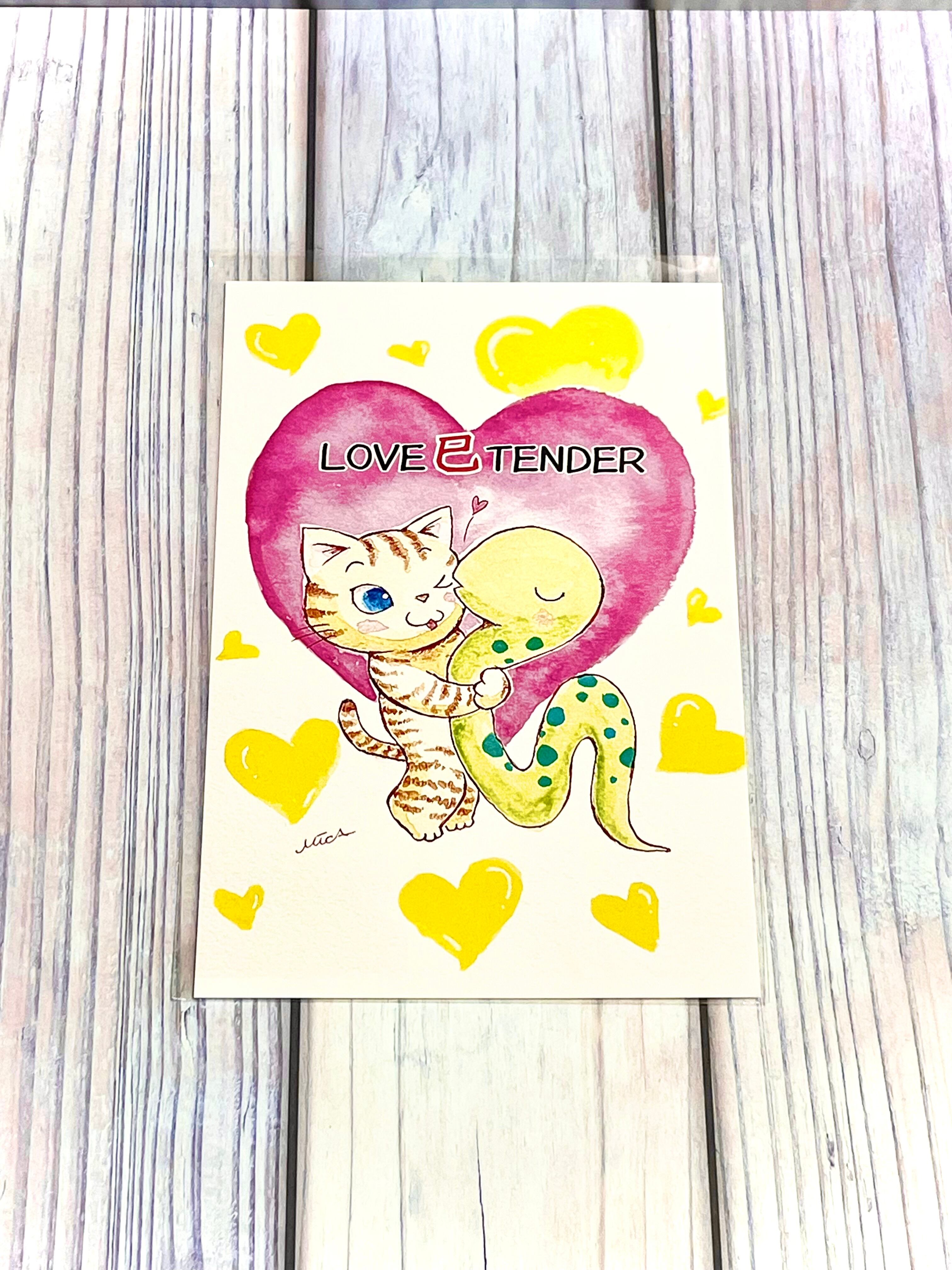 2025年の干支、へびちゃんと仲良しなにゃんこさんを描きました。